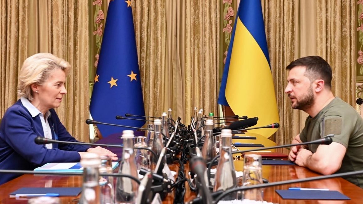 Обсуждения этого вопроса состоялись в Брюсселе в понедельник, сразу после неожиданного визита в Киев президента Комиссии Урсулы фон дер Ляйен, где она обсудила заявку Украины на членство с президентом Владимиром Зеленским. Это была вторая поездка фон дер Ляйен в украинскую столицу с начала вторжения России в Украину.
