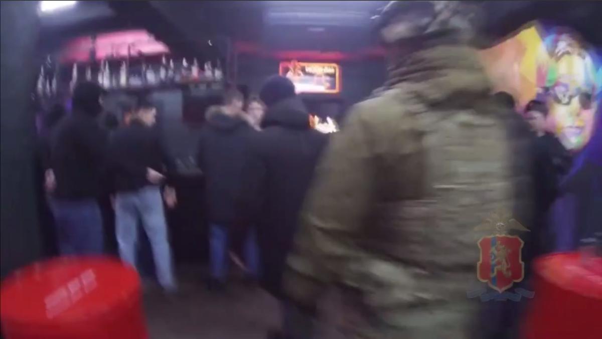 На видео, опубликованном пресс-службой полиции, видно, что силовики в камуфляжной форме ворвались в клуб и положили посетителей лицом в пол.