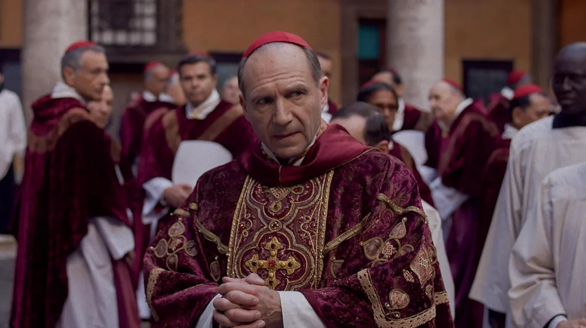 В белых плащах с кровавым подбоем шаркающей походкой, хотя и не обязательно шаркающей, пусть возраст и берет свое, сто восемь кардиналов Римской католической церкви собираются за закрытыми дверями Сикстинской капеллы, чтобы выбрать нового епископа Рима и главу Ватикана — нового папу римского. Одеяние кардиналов, конечно, не плащ, как у Понтия Пилата в романе Михаила Булгакова. Но именно его описание римского чиновника в Иудее, связанного с христианством совсем другими узами, как нельзя лучше передает эффект от расшитых золотом пурпурных риз и белоснежных туник епископов, снятых кинооператором Стефаном Фонтеном, — они вызывают благоговение.