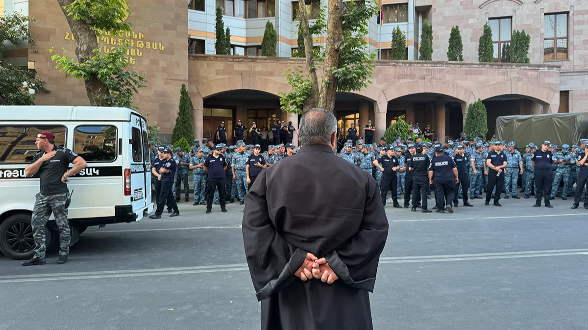 Первые группы сотрудников Службы национальной безопасности (СНБ) и разных подразделений полиции (в том числе сил специального назначения) в масках появились у ворот монастырского комплекса Эчмиадзина в городе Вагаршапате рано утром 27 июня. Силовики планировали задержать настоятеля Ширакской епархии, архиепископа Микаэла Аджапахяна, в отношении которого возбуждено дело о публичных призывах к захвату власти и свержении конституционного строя за призыв к генералам в 2023-м «устроить переворот» в стране.