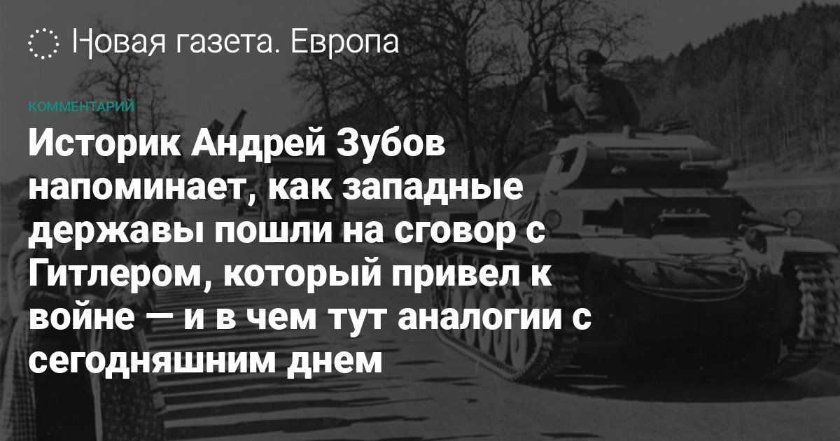 Историк Андрей Зубов напоминает, как западные державы пошли на сговор с Гитлером, который привел к войне — и в чем тут аналогии с сегодняшним днем