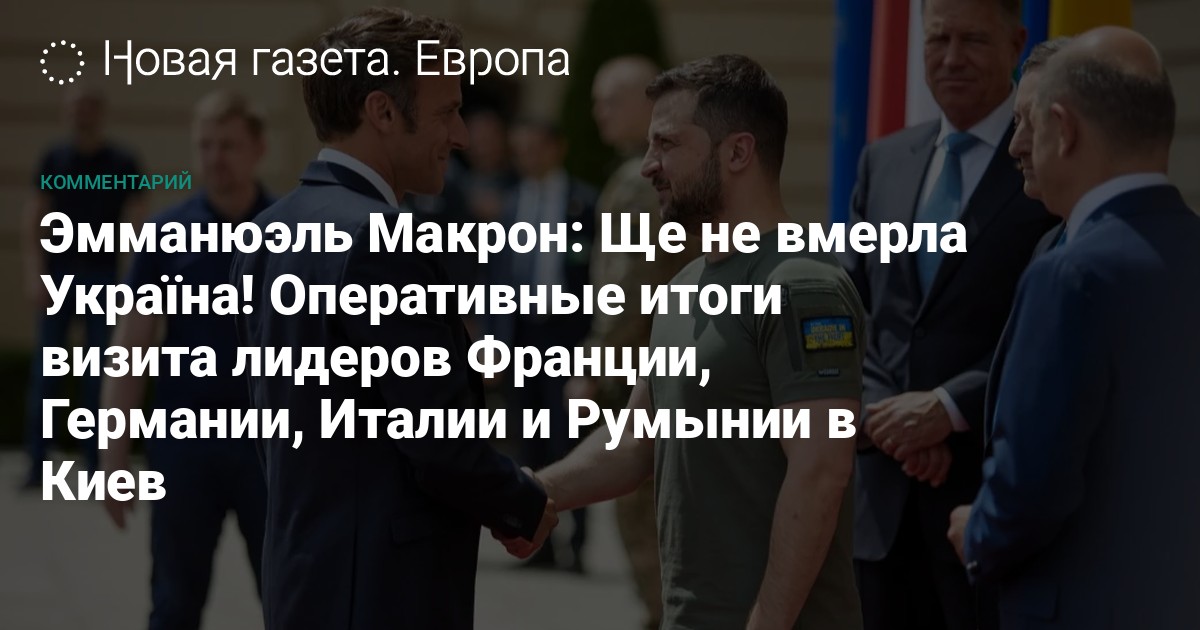 — Я хочу в первую очередь поблагодарить президента Зеленского и через него — украинский народ — за то, что вы приняли нас сегодня (Лидеры Италии, Германии и Франции не были в Украине после начала войны, Макрон в последний раз приезжал 8 февраля, после завершившейся провалом «миротворческой» командировки Москва-Киев). И через наше присутствие — всех четверых — в Киеве мы выражаем братское приветствие европейских народов свободному и суверенному народу (Украины), чей героизм перед лицом вооруженной агрессии России вызывает восхищение, подпитывает уважение и требует четкой поддержки. (…)