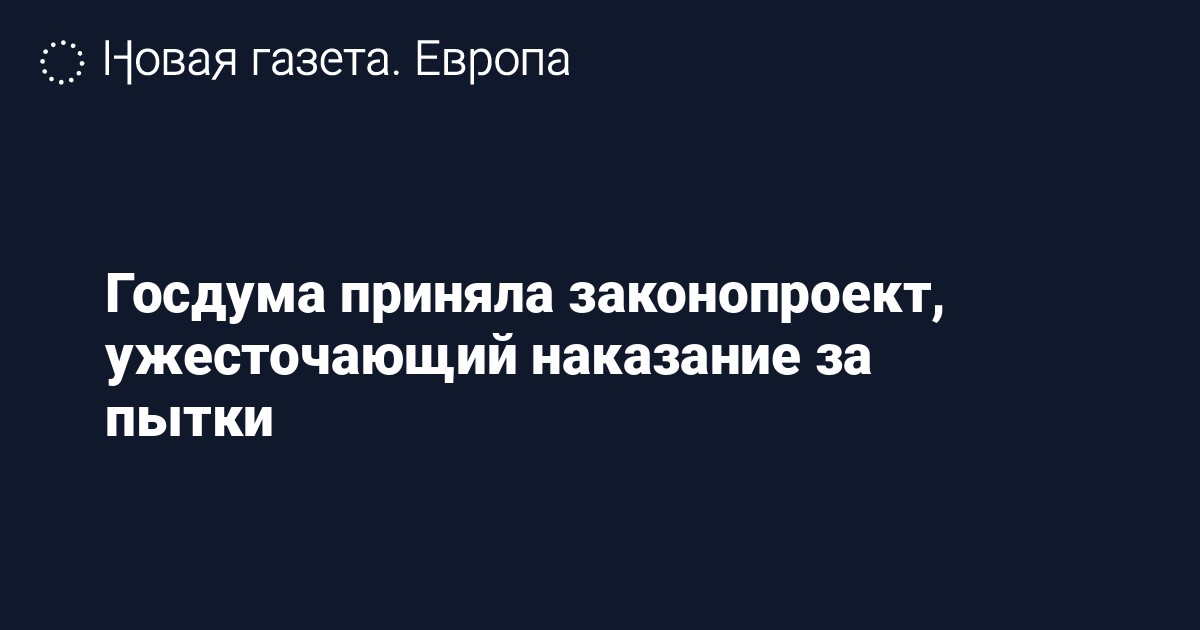 Законопроект внесли в Госдуму сенатор Андрей Клишас и депутат Павел Крашенинников, в первом чтении его приняли в середине февраля. Правозащитники раскритиковали законопроект, так как он не выделяет пытки как отдельное преступление.