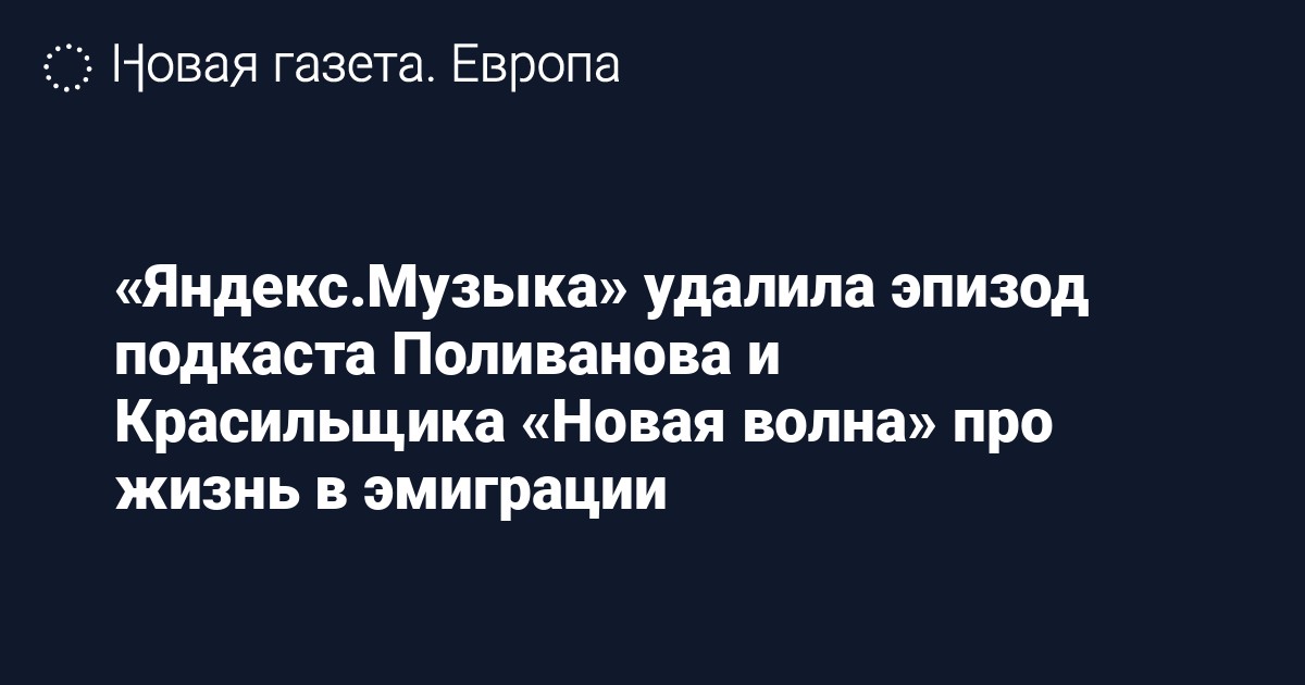 «Яндекс.Музыка» удалила первый эпизод подкаста журналистов Александра Поливанова и Ильи Красильщика «Новая волна» про жизнь в эмиграции. Об этом сообщается в телеграм-канале проекта.