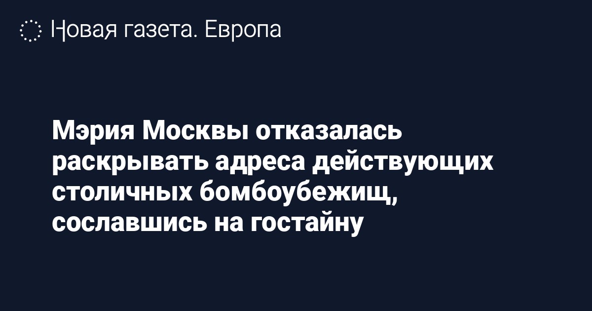 В ответе на запрос, подписанном заммэра Москвы Петром Бирюковым, говорится, что адреса бомбоубежищ, информация об их количестве, готовности к приему укрываемых — гостайна. «Страшно представить, к чему может привести такая «секретность», когда в час Х никто не будет знать, куда идти», — прокомментировал этот ответ Ступин. Он добавил, что попросит проверить прокуратуру сами сооружения и «загадочную их «секретность».