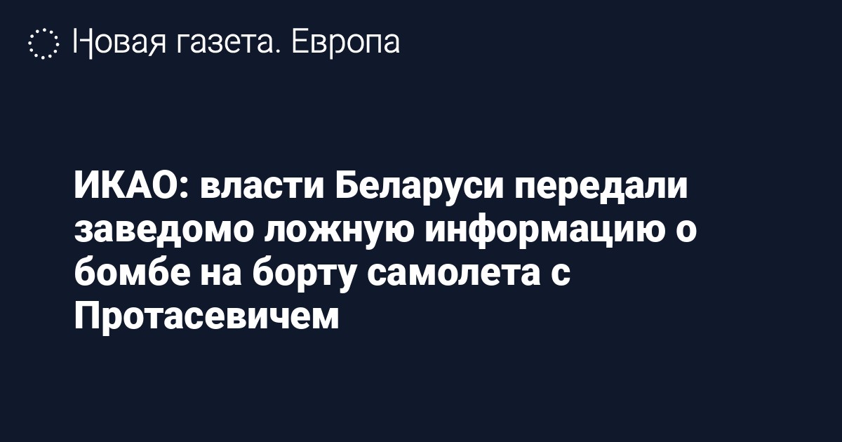 «Совет ИКАО признал, что угроза взрыва бомбы в отношении рейса FR4978 авиакомпании Ryanair была заведомо ложной и угрожала его безопасности, а также то, что угроза была передана экипажу по указанию высокопоставленных правительственных чиновников Беларуси», — сказано в пресс-релизе.