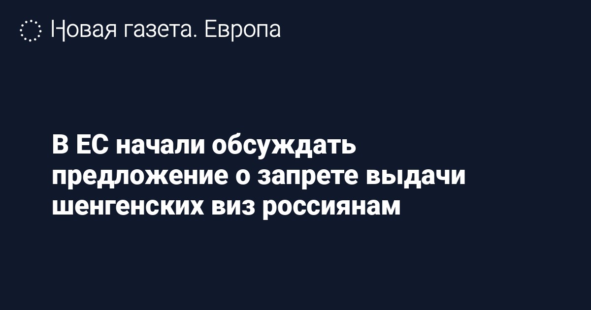 Представитель МИД ФРГ Андреа Зассе сообщила, что эту инициативу могут обсудить на встрече министров иностранных дел ЕС в конце августа в Праге. Она отметила, что проект включает запрет на выдачу виз не только для туристов из России, но и для учащихся и родственников граждан стран ЕС. Зассе назвала дискуссию о таком запрете «очень гипотетической».