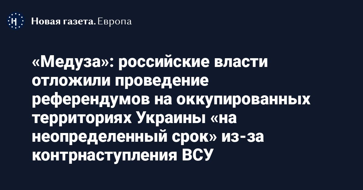 Российские власти отложили проведение референдумов на оккупированных территориях Украины «на неопределенный срок» из-за успешного контрнаступления ВСУ в Харьковской области. Об этом сообщает «Медуза» со ссылкой на источники, близкие к Кремлю.