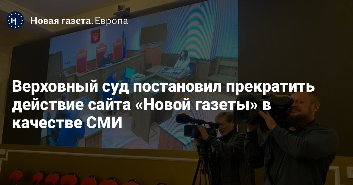 Верховный суд РФ постановил остановить действие свидетельства о регистрации электронного СМИ, выданное сайту «Новой газеты». Об этом сообщает корреспондент «Новой газеты. Европа».