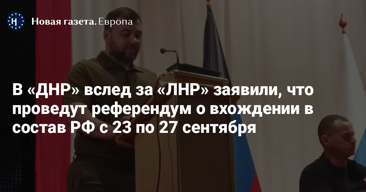 В «ДНР» вслед за «ЛНР» заявили, что проведут референдум о вхождении в состав РФ с 23 по 27 сентября. Об этом сообщает ТАСС со ссылкой на Народный совет республики.