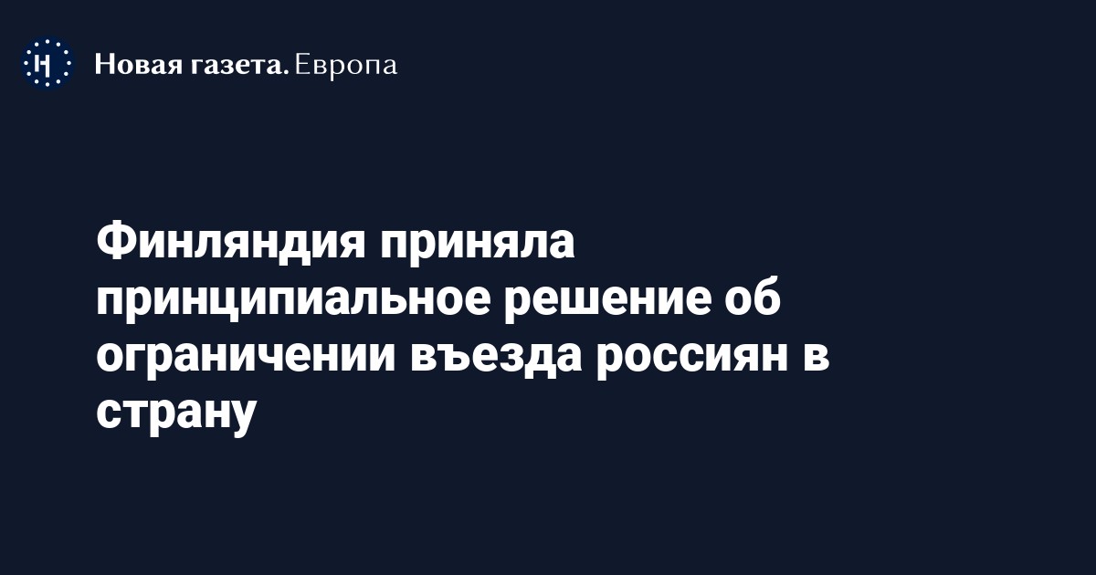 «В пятницу, 23 сентября, президент Республики и Комитет министров иностранных дел и политики безопасности при Правительственном совете сообщили, что Правительственный совет примет принципиальное решение о существенных ограничениях на въезд российских граждан и выдаче виз на основании серьезных ущерб международному положению Финляндии», — сказано в сообщении.