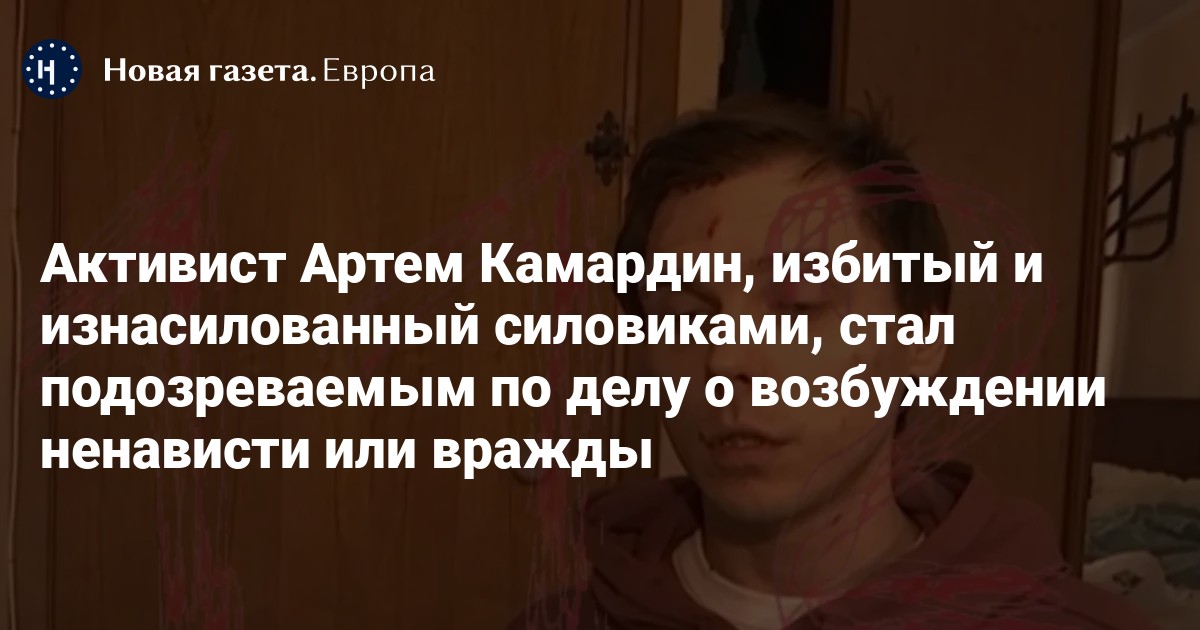 Активист Артем Камардин, которого при задержании избили и изнасиловали силовики, стал подозреваемым по делу о возбуждении ненависти или вражды с угрозой применения насилия (п. «а» ч. 2 ст. 282 УК). Об этом сообщает его адвокат Леонид Соловьев.