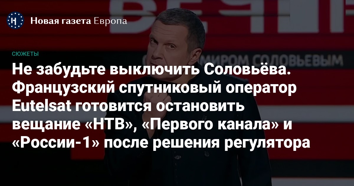 «Arcom направило официальное уведомление компании Eutelsat о прекращении вещания трех российских каналов — «Россия 1», «Первый канал» и «НТВ», чьи программы о конфликте в Украине содержат неоднократные призывы к ненависти и насилию и многочисленные нарушения информационной честности».