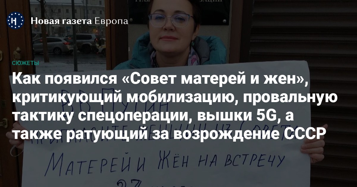 «Совет матерей и жен» — общественное движение, появившееся после объявления в России частичной мобилизации. В нем, как и понятно из названия, состоят мамы и жены мобилизованных, кадровых военнослужащих и призывников, проходящих срочную службу. Сегодня на телеграм-канал «Совета матерей и жен» подписано более 23 тысяч человек. Женщины, состоящие в «Совете матерей и жен» требуют встреч с первыми лицами, возбуждения уголовных дел по фактам нарушений при мобилизации и отправки срочников на фронт.