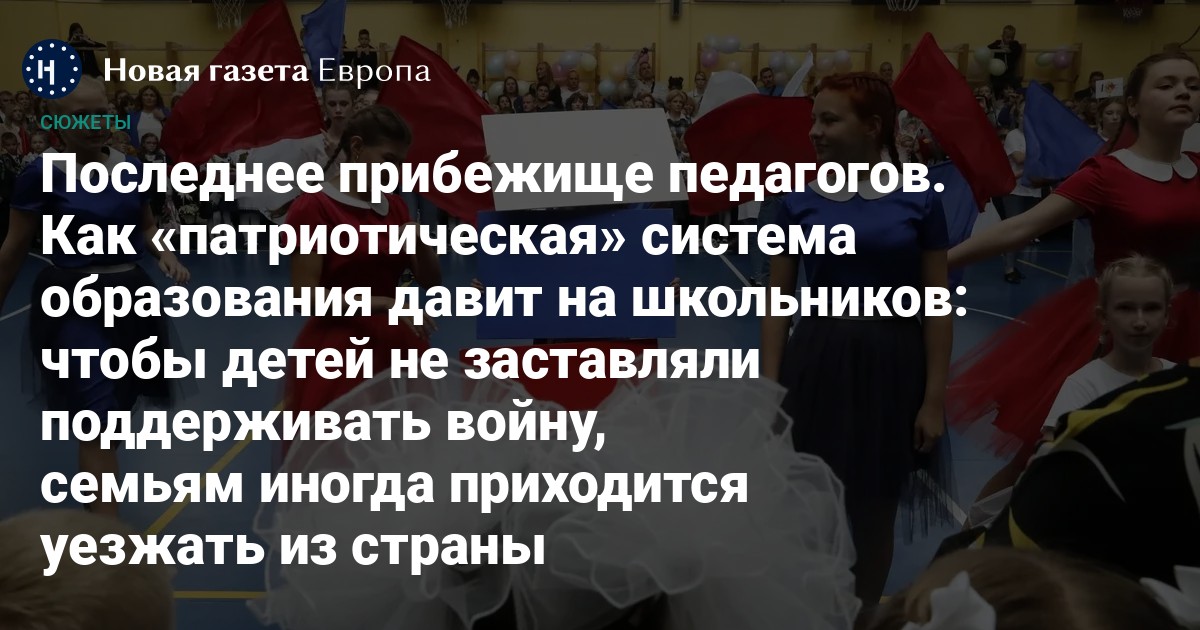 В 2022 году российское образование стало крайне политизированным. В школах идут добровольно-принудительные «Разговоры о важном», родительские комитеты собирают деньги на нужды российской армии, детей просят писать письма на фронт. На кого-то из антивоенно настроенных учеников пропаганда в школе никак (или почти никак) не повлияла — «Новая газета Европа» уже публиковала монологи таких подростков. А вот некоторым семьям приходится отстаивать право своих детей не участвовать в поддержке войны: через письма директору, суды, (эти варианты работают не всегда), семейное обучение и отъезд из страны.