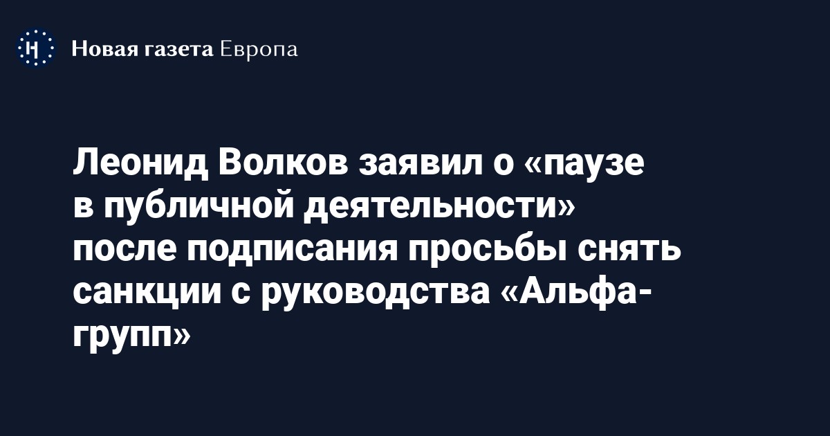 Накануне бывший главред «Эхо Москвы» Алексей Венедиктов опубликовал письмо в адрес главы Еврокомиссии Урсулы фон дер Ляйен и главы дипломатии ЕС Жозепа Борреля с просьбой снять санкции с руководства «Альфа-групп».