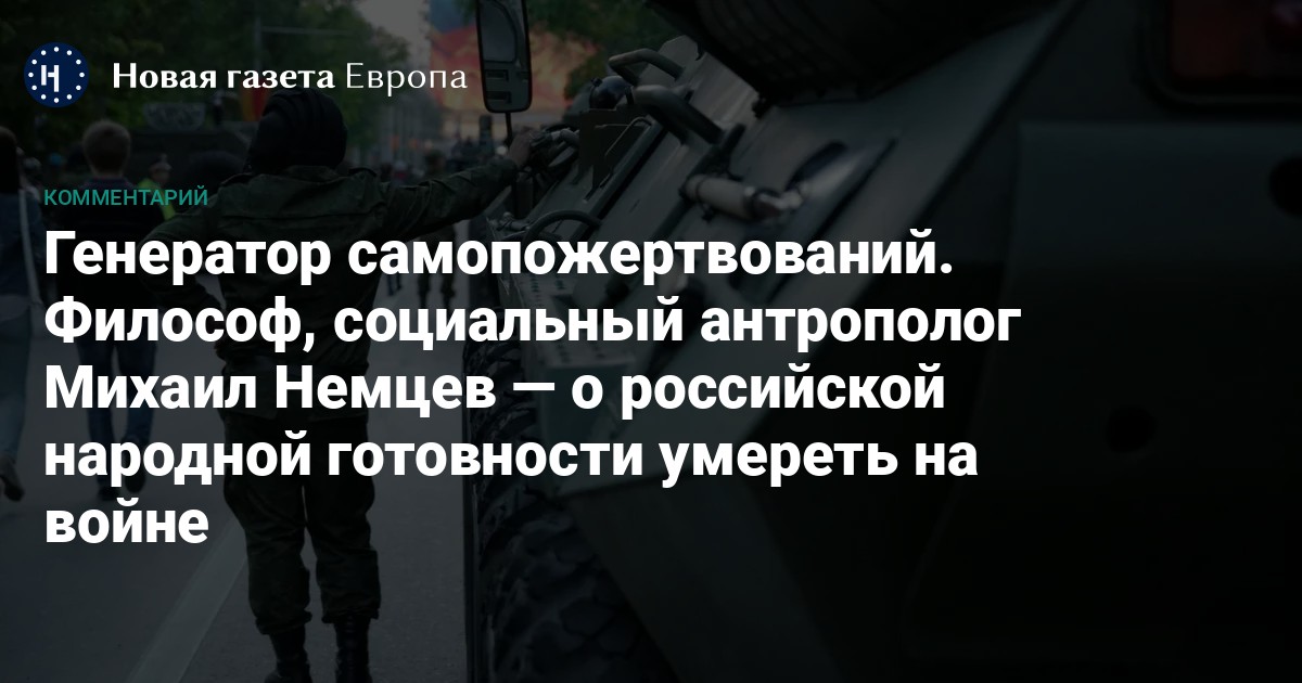 Но кажется, в 2022-м мощности этого генератора уже было недостаточно. И это — хорошая новость. Поэтому российский главнокомандующий нехотя, но объявил частичную мобилизацию прошлой осенью. Надеюсь, на этом генератор окончательно сломается: эпоха «народных войн» миновала, а кроме готовности «погибнуть за Родину», он ничего не производит. Надеюсь, катастрофа этой войны станет страшной ценой, которую нужно заплатить, чтобы наконец отменить безусловную приемлемость смерти на войне для российских мужчин, и мы сможем спокойно заниматься другими делами: детьми, родителями, строительством собственной жизни и собственного дела.