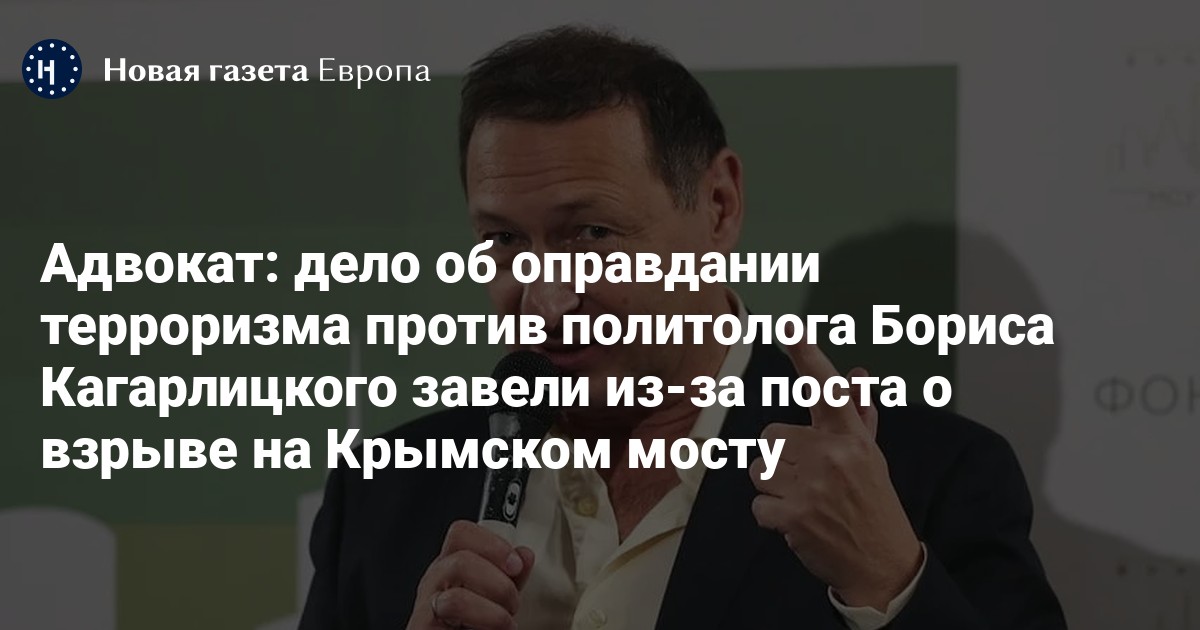 Дело об оправдании терроризма, которое возбудили против социолога и политолога Бориса Кагарлицкого, было заведено из-за прошлогоднего поста о взрыве на Крымском мосту. Об этом «Агентству» сообщил адвокат Сергей Ерохов.