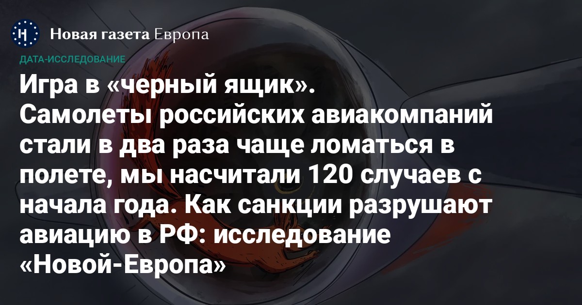Данные, собранные «Новой-Европа» по открытым источникам, подтверждают этот вывод: с января по август 2023 года в России произошло более 120 авиапроисшествий с участием гражданских самолетов, эксплуатируемых российскими авиакомпаниями. Это в 2,2 раза больше, чем обычно: за предыдущие пять лет, с 2018-го по 2022-й, к концу лета в среднем фиксировалось 55 инцидентов. По количеству поломок неполный 2023 год уже обогнал все предыдущие.