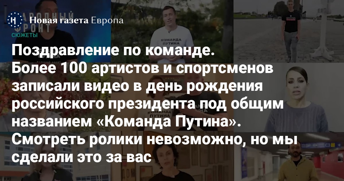 Более 100 артистов и спортсменов записали видео в день рождения российского президента под общим названием «Команда Путина». Смотреть ролики невозможно, но мы сделали это за вас