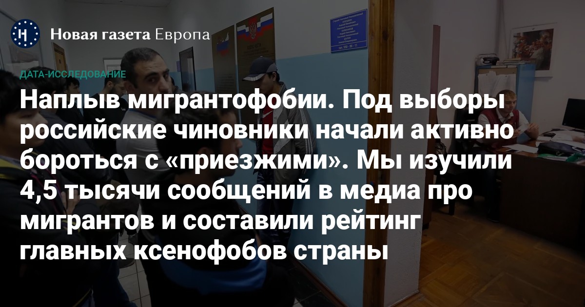В последние месяцы российские чиновники всё чаще говорят о росте преступности среди приезжих и предлагают всё более жесткие меры по борьбе с «притоком мигрантов» — от запрета водить такси до призыва на фронт «в приоритетном порядке». Эксперты связывают эту риторику с подготовкой к президентским выборам. «Новая-Европа» изучила 4,5 тысячи сообщений про мигрантов в медиа и составила рейтинг главных ксенофобов в российской власти.