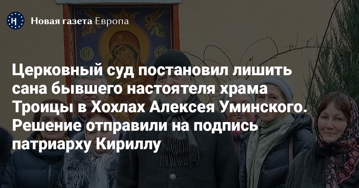 Церковный суд лишил сана бывшего настоятеля храма Троицы в Хохлах Алексея Уминского. Решение отправили на подпись патриарху Кириллу, сообщает «Новая газета».
