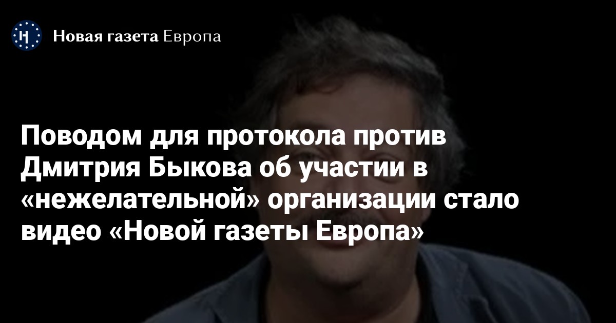В отношении писателя Дмитрия Быкова составили протокол об участии в работе «нежелательной» организации (ст. 20.33 КоАП) из-за участия в видео «Новой газеты Европа». Об этом сам Быков сообщил «Новой-Европа».