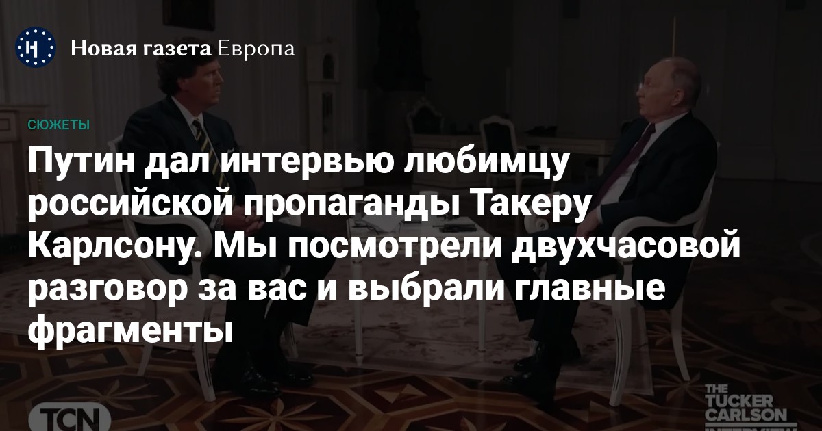 В итоге Путин прочитал Карлсону почти получасовую лекцию об истории России и Украины, рассказал, насколько, на его взгляд, возможно мирное соглашение и намекнул на вероятность обмена журналиста Эвана Гершковича. Главные моменты интервью — в материале «Новой-Европа».