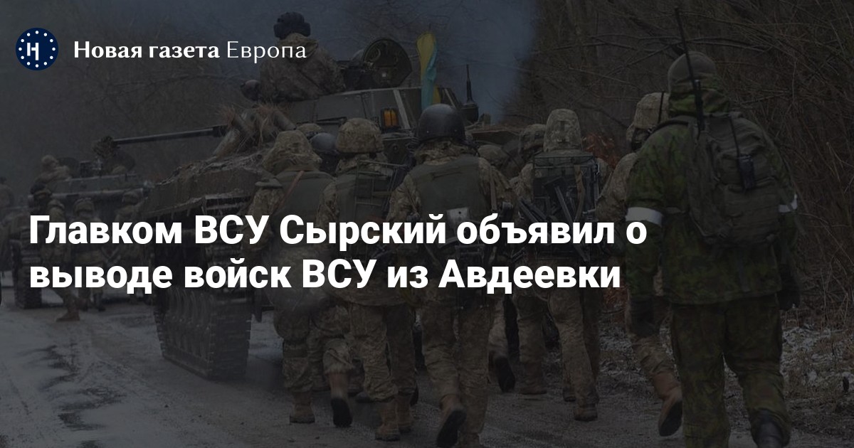 Главнокомандующий ВСУ Александр Сырский объявил о выводе войск из Авдеевки Донецкой области. Об этом он сообщил в фейсбуке.