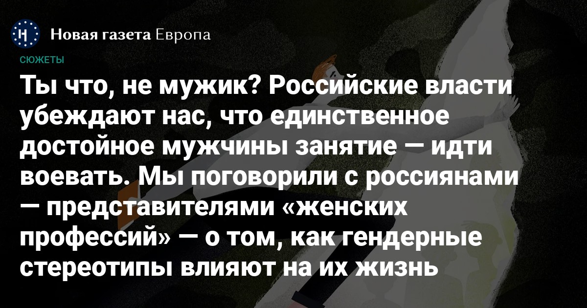 Но далеко не все российские мужчины видят себя военнослужащими. Значит ли это, что они менее мужественны? Мы поговорили с молодыми россиянами — представителями «немужских» профессий — о том, как гендерные нормы сказываются на их жизни.