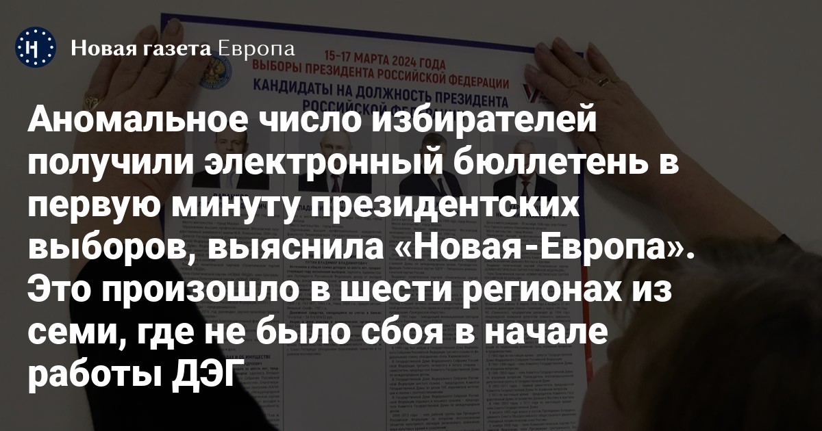 В шести регионах из семи, где не было технического сбоя при начале электронного голосования, аномальное число избирателей получили электронный бюллетень в первую же минуту, выяснила «Новая-Европа».