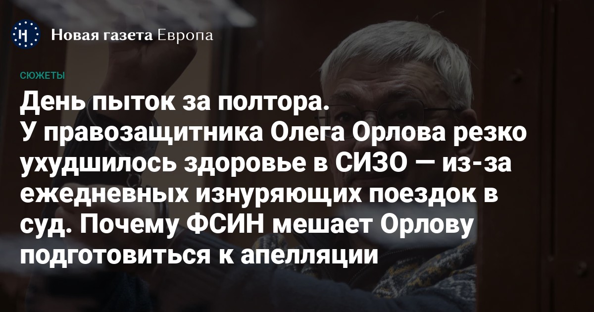 У правозащитника Олега Орлова резко ухудшилось здоровье в СИЗО — из-за ежедневных изнуряющих поездок в суд. Почему ФСИН мешает Орлову подготовиться к апелляции