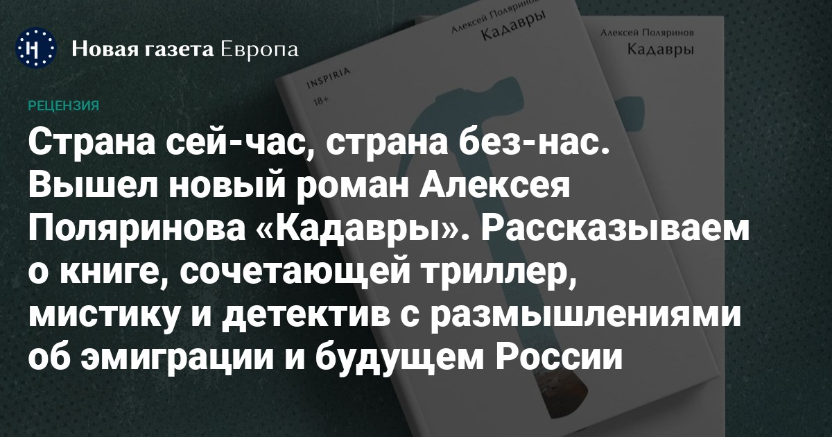 «Кадавры» — это и роман об эмиграции, в нём даже есть инструкция из девяти пунктов по психологической помощи для новоиспеченных иммигрантов. Девятый пункт — забыть о возвращении в Россию. После 24 февраля 2022-го Алексей Поляринов уехал из России, работу над романом он завершил в Тбилиси. Главная героиня Даша уезжает из России в Берлин, а руководительница ее научного института исследования «кадавров» — в таком срезе они практически превращаются в кричащую метафору «неудобного прошлого», — отбывает срок в колонии по приговору в госизмене. Но Даша получает задание от немецкого института, затем китайскую визу — и возвращается.