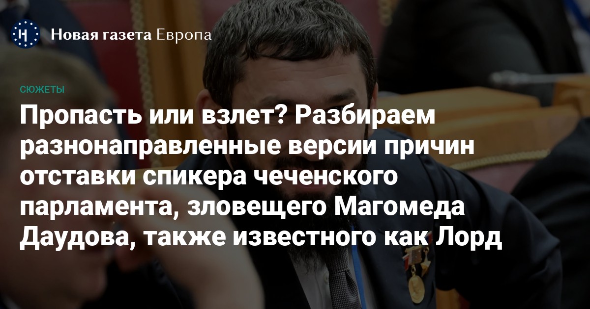 За день до того, как чеченские информагентства опубликовали новость о неожиданной отставке спикера чеченского парламента Магомеда Даудова, несколько СМИ и телеграм-каналов, специализирующихся на освещении ситуации в регионах Северного Кавказа, получили анонимные сообщения следующего содержания: «Добрый вечер. Лорда (Даудова Магомеда) говорят снимают с должности. Насколько я понял, в связи с перестановками в Москве перестановки начались и в Чечне. На днях говорят уволят его. Насколько я понял уже решенный вопрос» (орфография и пунктуация оригинала — прим. ред.).