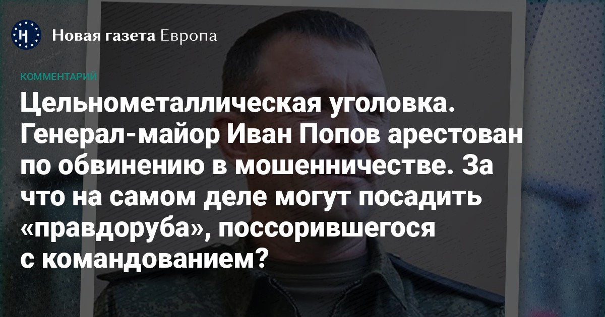 Генерал-майор Иван Попов арестован по обвинению в мошенничестве. За что на самом деле могут посадить «правдоруба», поссорившегося с командованием?