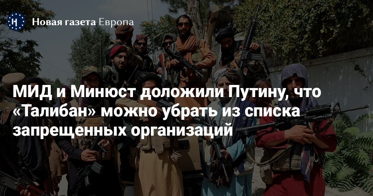 МИД и Минюст РФ доложили Владимиру Путину, что «Талибан» можно убрать из списка запрещенных организаций. Об этом пишет ТАСС.