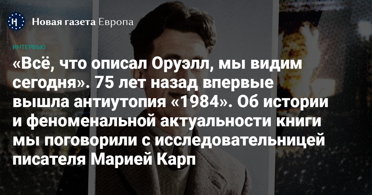 Писательница и переводчица Мария Карп уже давно исследует биографию и творчество Оруэлла. Карп родилась в Ленинграде и впервые прочитала «1984» еще в студенческие годы, подпольно. Сегодня она живет в Великобритании, и пишет о связях Оруэлла с Россией. В 2017 году Мария выпустила первую литературную биографию Оруэлла на русском языке, а в 2023-м — книгу «Джордж Оруэлл и Россия» (для англоязычной аудитории).