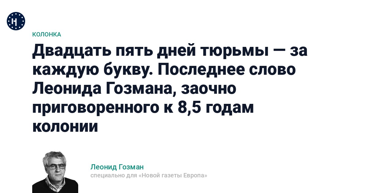 Если бы я был в России, то вышел бы к новому 2033 году, в 82 с половиной года. Но не вышел бы: я не жалуюсь на здоровье, но в моем возрасте в тюрьме столько не живут — это пожизненный срок. Правда, и преступление серьезное. Осудили за то, что (еще одна цитата из обвинительного заключения): «Действия руководства страны и Вооруженных сил РФ в период проведения специальной военной операции представлены как приведшие к большому количеств жертв среди мирного населения Украины». Клевета же, не поспоришь! За такое можно было бы и больше дать.