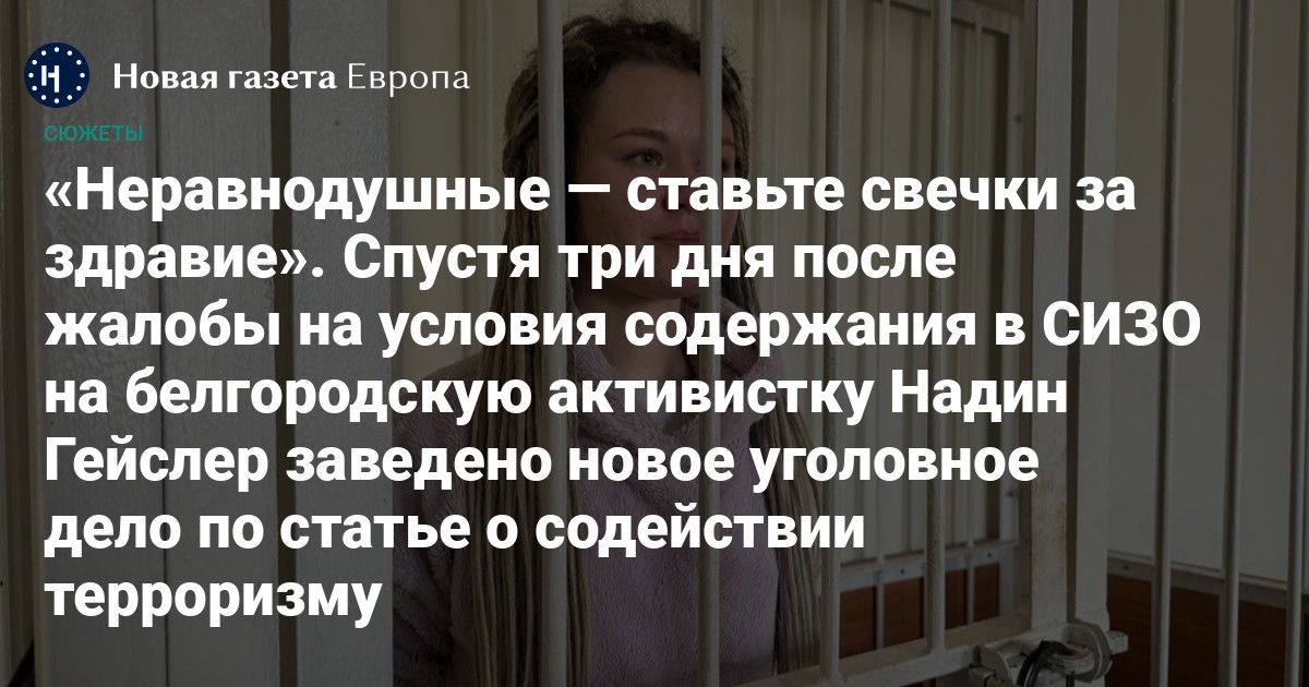 Примечательно, что между публикацией предположительной переписки Надин с Еленой Кучма и возбуждением уголовного дела прошел почти месяц. А с момента ее ареста — вообще более полугода. Сомнительно, что ФСБ всё это время не знала о существовании переписки, по мотивам которой возбуждено новое дело.