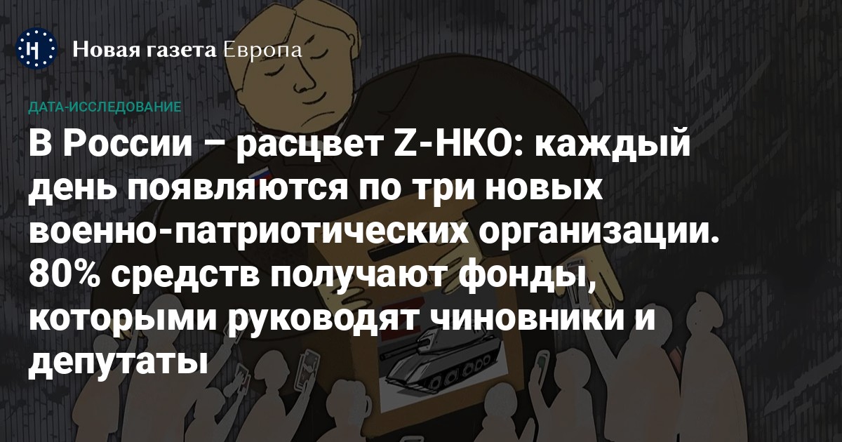 В России – расцвет Z-НКО: каждый день появляются по три новых военно-патриотических организации. 80% средств получают фонды, которыми руководят чиновники и депутаты
