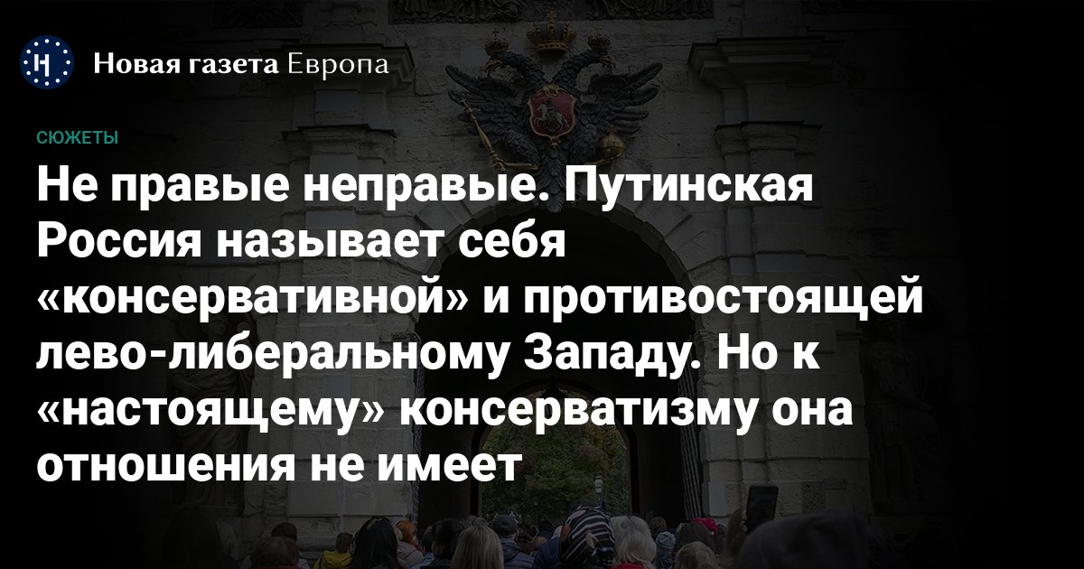 То обстоятельство, что российским властям в целом удается через манипуляции и пропаганду навязать кому-то такую картину мира, указывает на глобальный кризис консерватизма. За последние десятилетия он действительно изменился до неузнаваемости, сперва обретя приставку нео- и став доктриной, оправдывающей слежку за гражданами и военные вторжения, а затем вовсе превратившись в алармистскую концепцию «Рек крови»*, выступающую не «за», а «против». Против мигрантов, ЛГБТ, абортов и «новой этики» — и в 2024-м году стало нормой причисление к консерваторам любой политической силы, изображающей непримиримую борьбу с перечисленными «woke-симптомами».