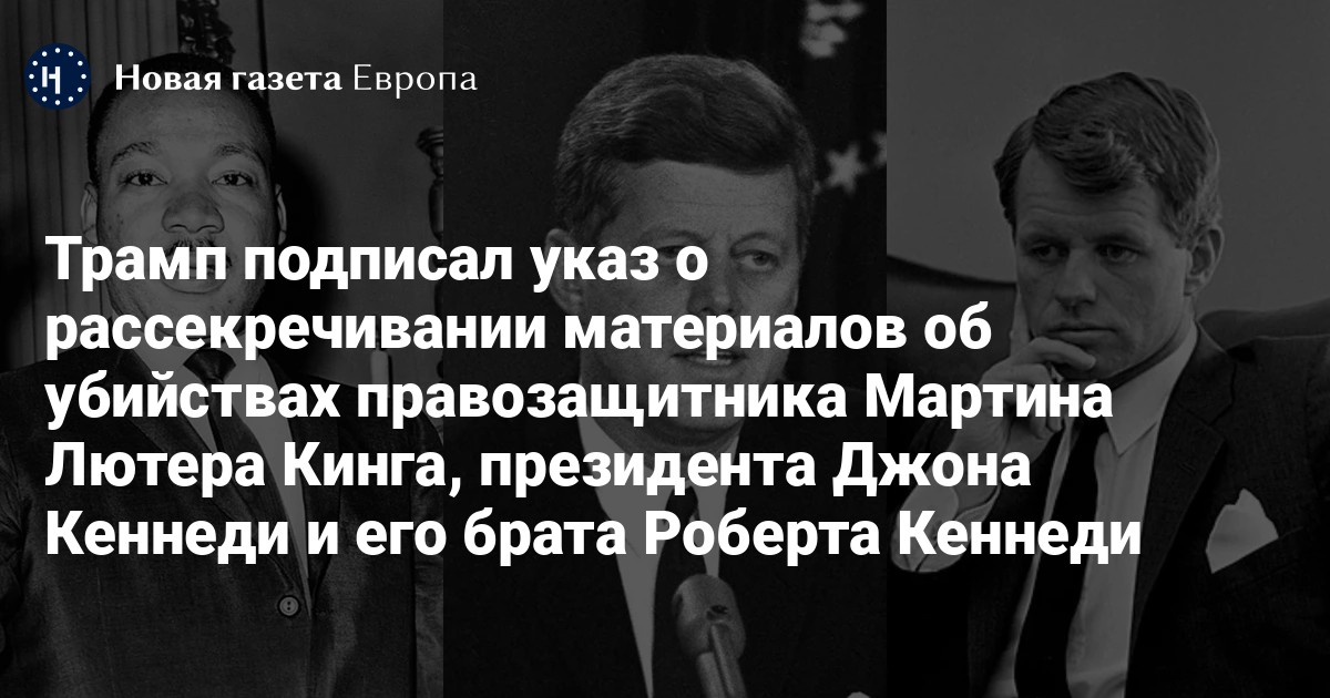 Президент США Дональд Трамп подписал указ о публикации документов, связанных с убийствами 35-го президента США Джона Кеннеди, его младшего брата бывшего генпрокурора США Роберта Кеннеди и проповедника Мартина Лютера Кинга. Об этом сообщается на сайте Белого дома.