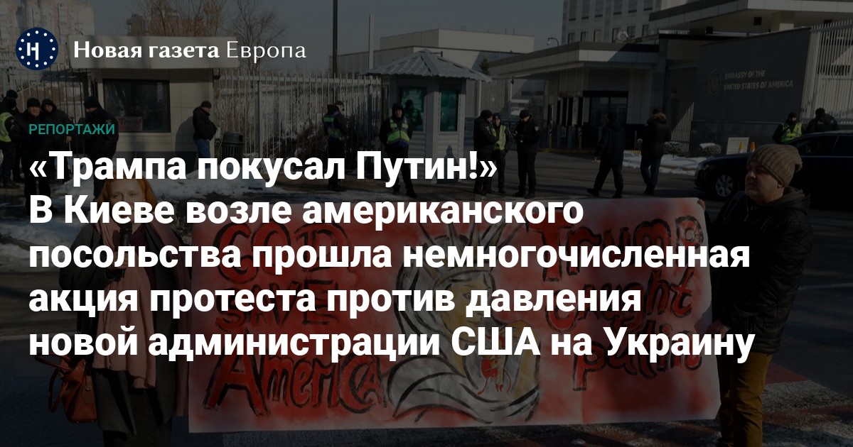 В Киеве возле американского посольства прошла немногочисленная акция протеста против давления новой администрации США на Украину