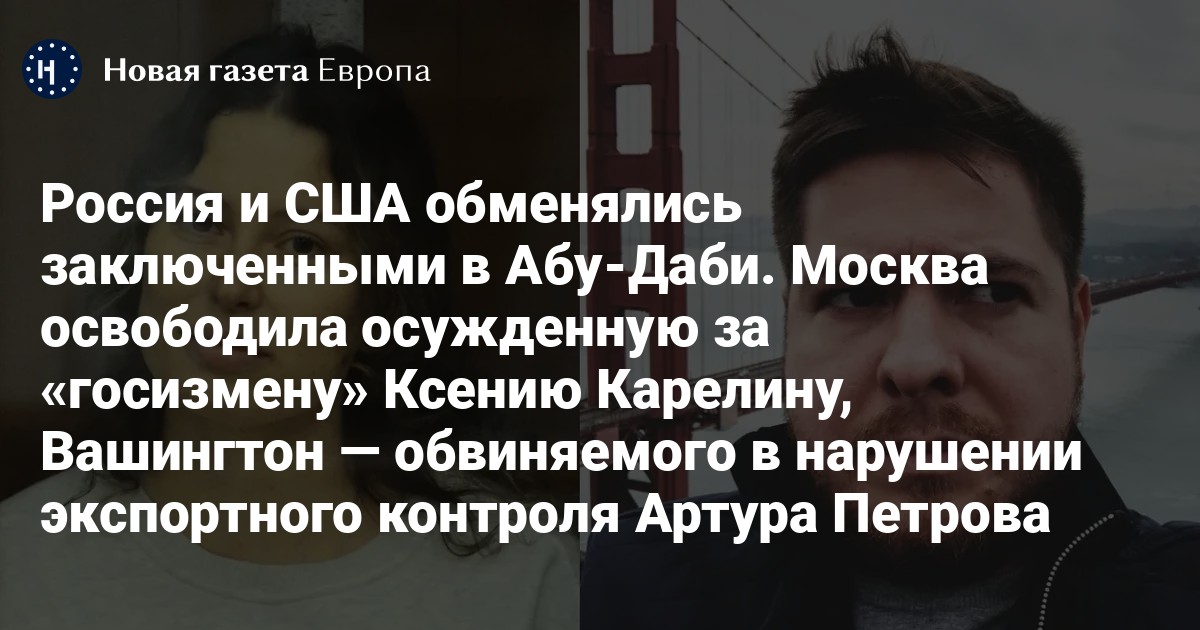По данным журналистов, российская сторона освободила из заключения Ксению Карелину — гражданку РФ и США, осужденную на 12 лет колонии по обвинению в госизмене. Поводом для ее преследования стал донат в 51,8 доллара в фонд поддержки Украины.
