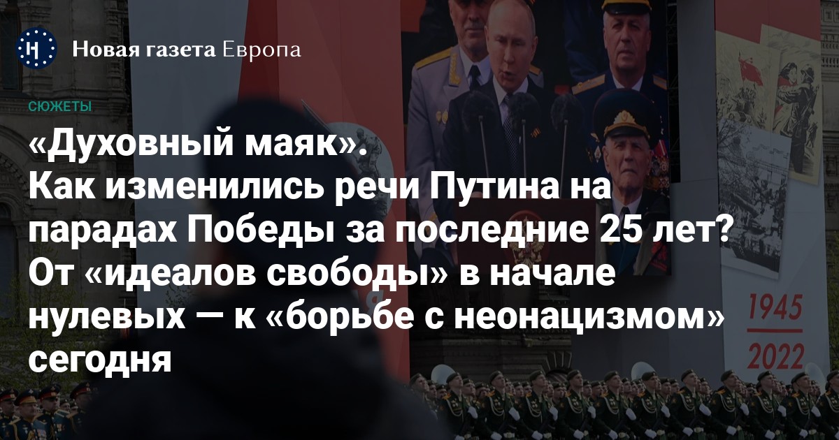 Большинство россиян считают День Победы самым важным праздником в году. Но использовать его в политических целях начали с самого начала — это делали и Леонид Брежнев, и Борис Ельцин. Владимир Путин же публично связывает вторжение в Украину с Великой Отечественной войной, считая его чуть ли не ее продолжением. Таким образом, памятная дата окончания войны продолжает служить пропаганде — и оправданию новой. Как Путин это делает и какие выводы можно сделать из развития его риторики на парадах за последние 25 лет — специально для «Новой газеты Европа» рассказывает историк Даниил Мартикайнен-Ярлыковский.