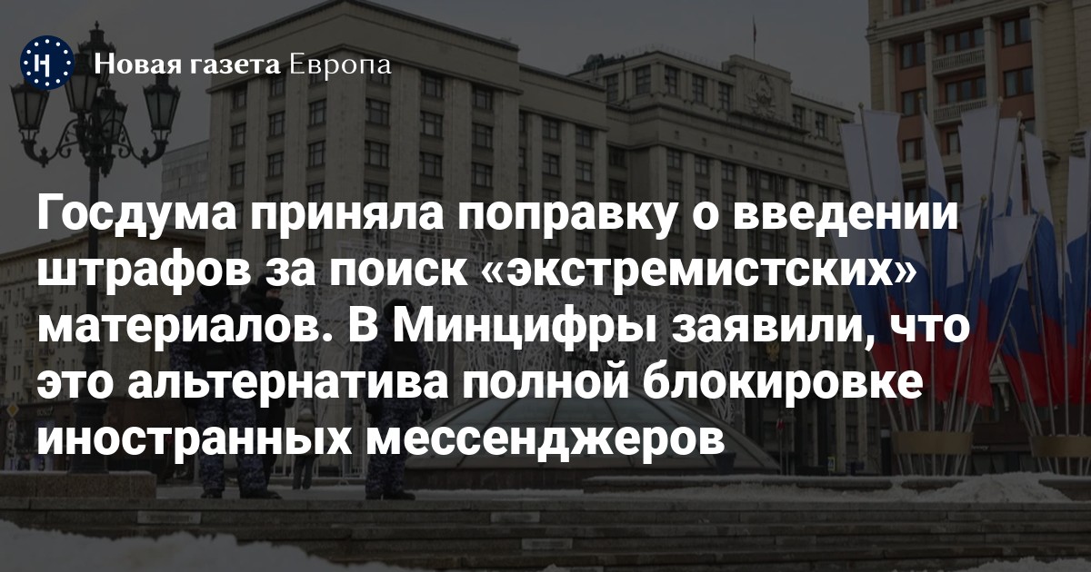 Депутаты Госдумы в третьем финальном чтении приняли поправку о введении штрафов за «поиск заведомо экстремистских материалов и получение доступа к ним».