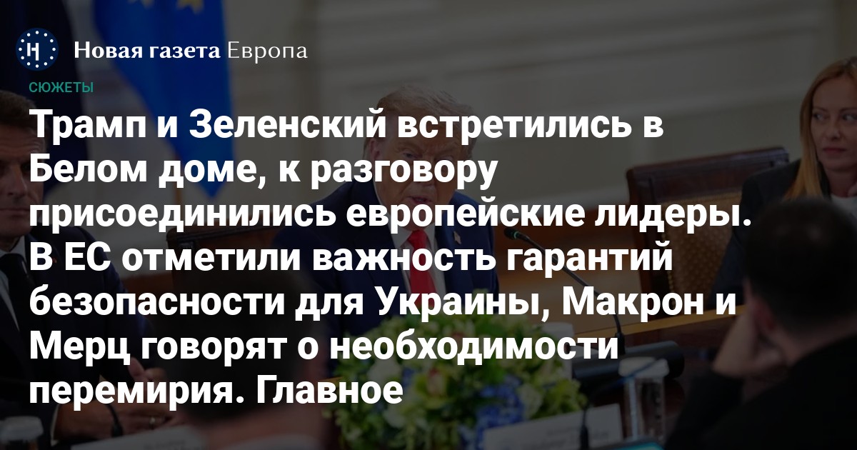 Зеленский назвал разговор с Трампом «очень хорошим» и отметил, что Украине нужно предоставить гарантии безопасности. Территориальные вопросы «обсудим во время трехсторонней встречи», добавил он. Важно обеспечить гарантии, аналогичные статье 5 договора НАТО, отметила Урсула фон дер Ляйен. Макрон и Мерц отметили необходимость перемирия. Трамп же нацелен на немедленный «прочный мир».