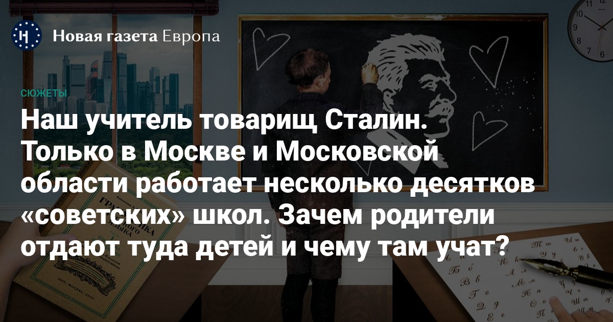 В противовес современной политике в «советских школах» много внимания уделяется личности Сталина. В некоторых школах учителя вешают его портрет над доской, где в государственных образовательных учреждениях обычно висит фотография Владимира Путина. Другие школы 21 декабря (день рождения Сталина. — Прим. ред.) пишут посты с поздравлениями в адрес советского вождя. А химкинская школа «Артель» на своем Youtube-канале публикует лекции учителя истории об эффективности сталинской экономики.