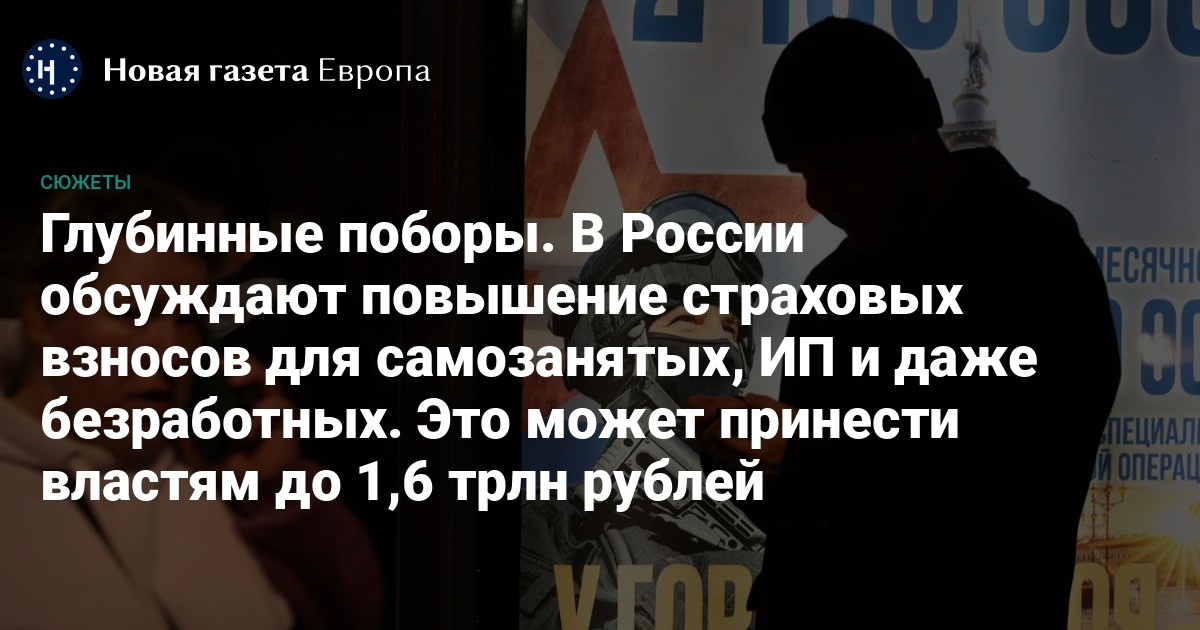 Чтобы заткнуть дыры в медицинской и пенсионной системах, власти хотят обложить дополнительными поборами тех, кто либо вовсе не платит взносы социального и медицинского страхования, или платит немного, — самозанятых, мелкий бизнес и даже безработных и занятых в теневом секторе. По расчетам «Новой-Европа», теоретически из них можно выколотить большую сумму — до 1,6 трлн рублей. Если, конечно, после таких мер не уйдут в тень уже даже те, кто платит взносы сейчас.