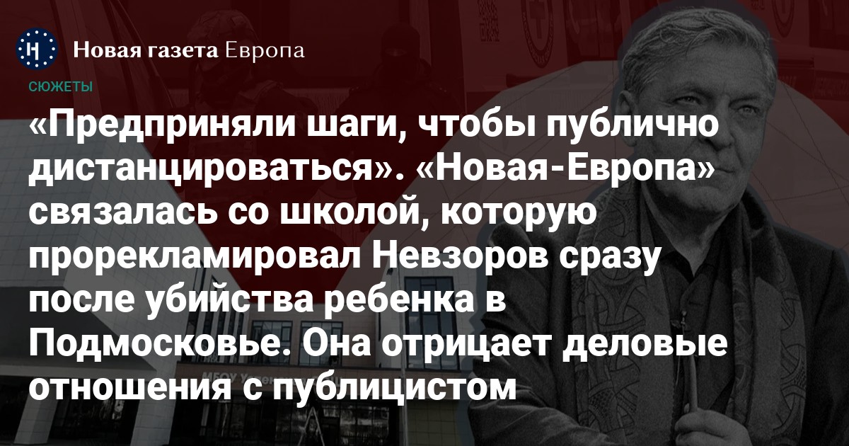 «Новая-Европа» обратилась в Leo School за комментариями. 17 декабря администрация школы сообщила нам, что «не размещала, не заказывала, не одобряла и не координировала какую-либо рекламную или промо-деятельность в телеграм-канале Александра Невзорова или на любых других личных платформах в связи с трагической гибелью ребенка». В школе подчеркнули, что между ними и Невзоровым (или членами его семьи) нет никаких коммерческих, рекламных или партнерских отношений.